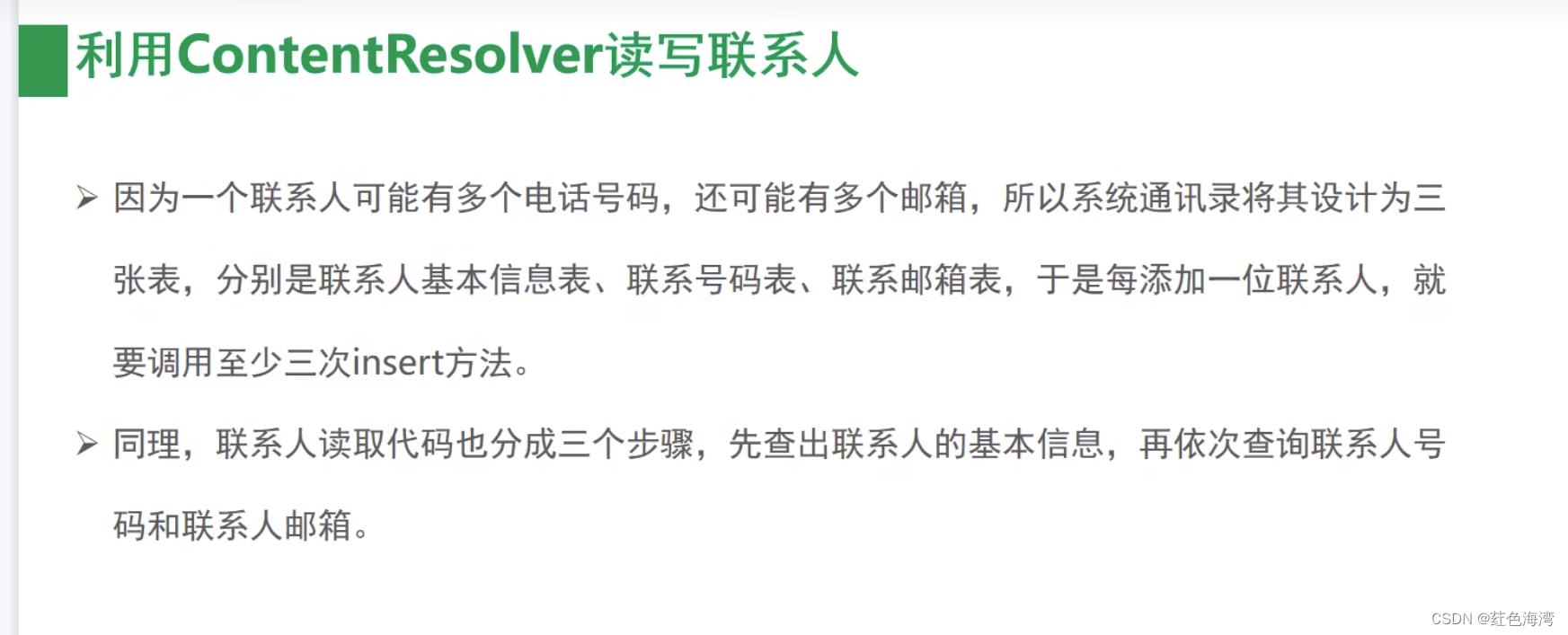 // 每一次操作都是一个 ContentProviderOperation, 构建一个操作集合,然后一次性执行