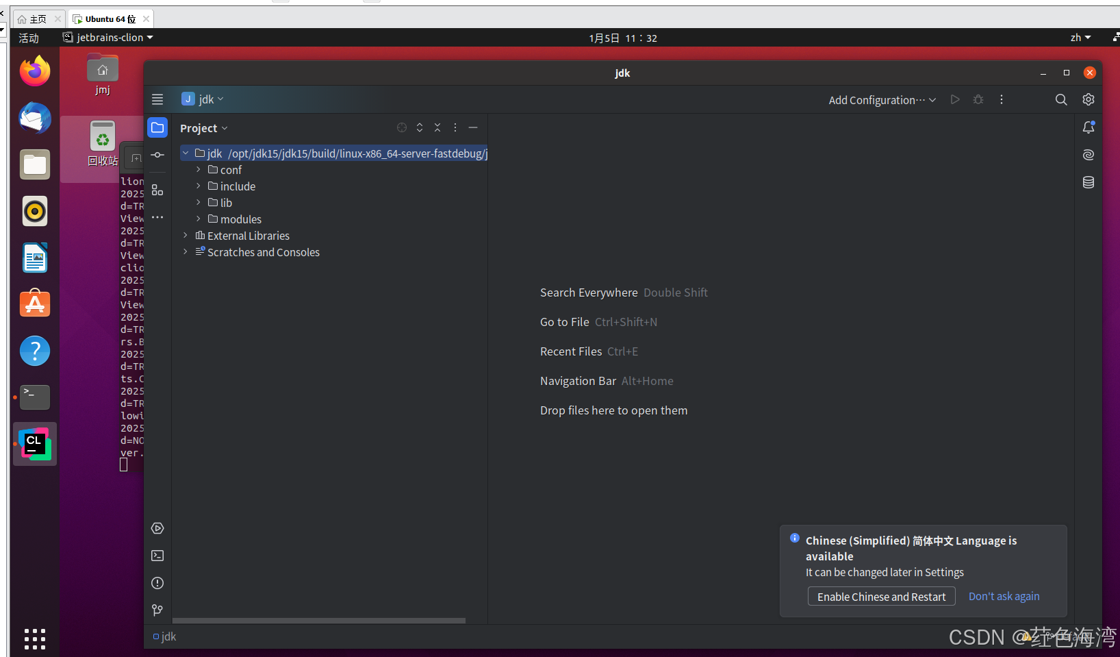 然后在里面安装 clion 源码编译器 使用 JDK14 根编译器来编译 JDK15源码, 成功编译并且运行成功 Hello world 。修改源码再编译先放一放 ,到时候时机成熟再回来继续啃!加油!