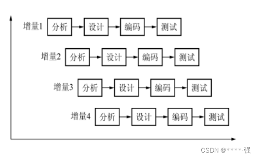 增量模型是把待开发的软件系统模块化,将每个模块作为一个增量组件,从而分批次的分析、设计、编码和测试这些增量组件。软件开发过程是递增式的过程。