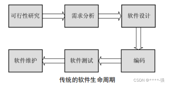 软件产品的生命周期是指从设计该产品的构想开始,到软件需求 的确定、软件设计、软件实现、产品测试与验收、投入使用以及 产品版本的不断更新,到最终该产品被市场淘汰的全过程。