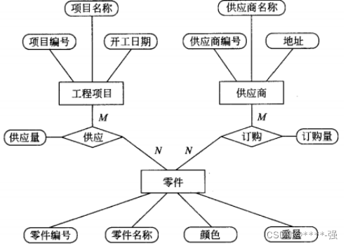 • 请为某仓库的管理系统设计一个ER模型。该仓库管理系统主要管理零件的订购和供应等事项。仓库管理系统向工程项目供应零件,并且根据需要向供应商订购零件。