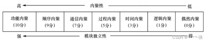 功能内聚:如果模块内所有处理元素属于一个整体,完成一个单一的功能,则称为功能内聚。功能内聚是最高程度的内聚