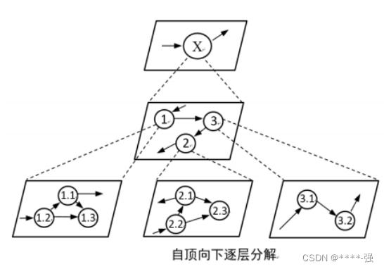 功能建模的思想就是用抽象模型的概念,按照软件内部数据传递和变换的关系,自顶向下逐层分解。