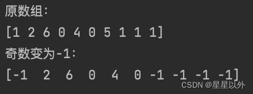 本文介绍了如何使用numpy库将随机生成的整数数组中所有奇数元素值替换为-1,通过示例展示了代码执行过程和输出结果。