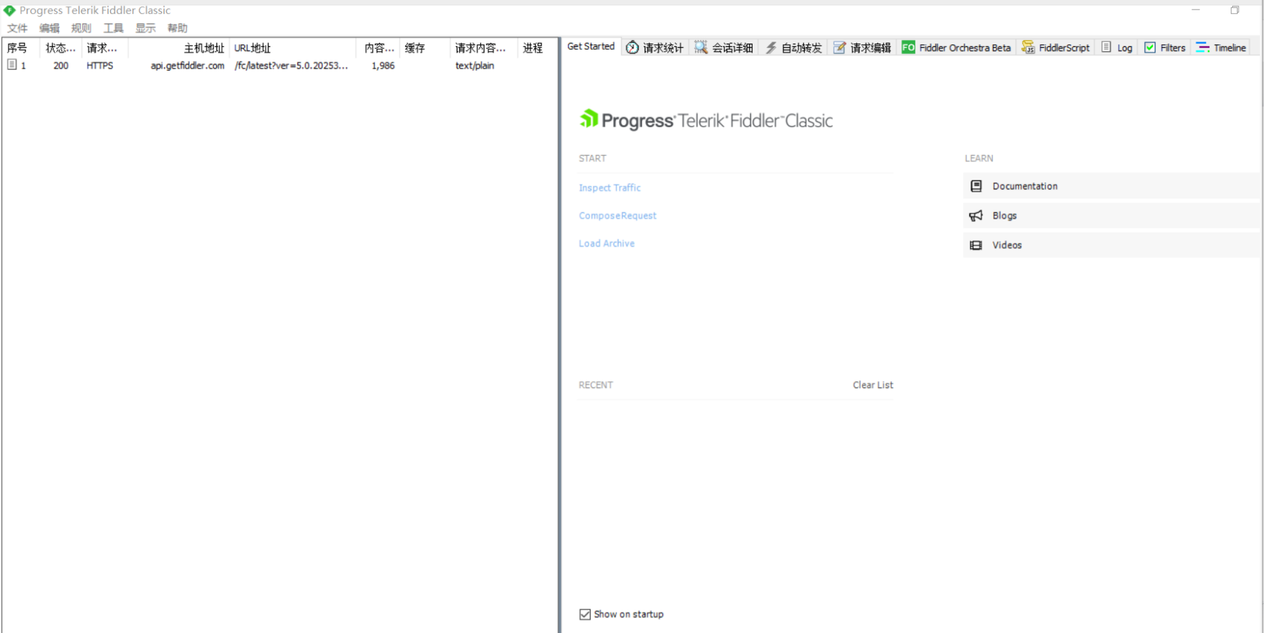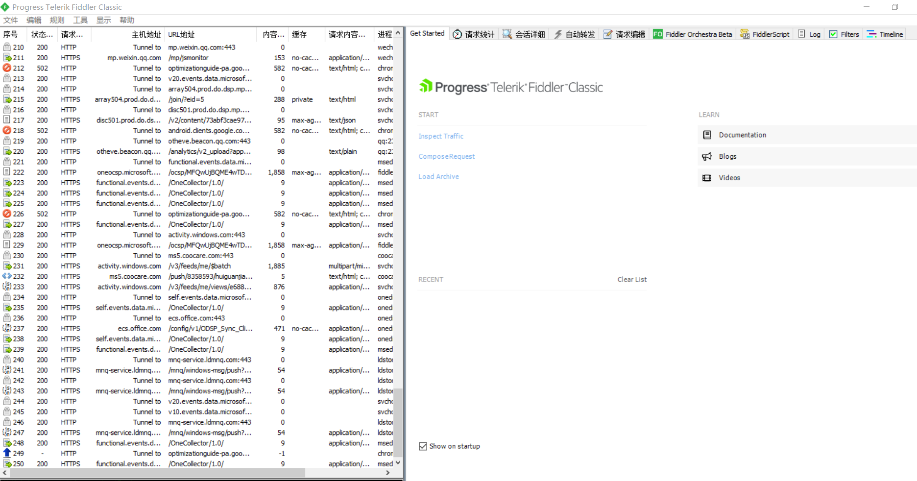 安装完fiddler证书后发现还是无法抓包,连最基本的pc的端都抓不了,基本上和刚下载下来的没区别,如图:
