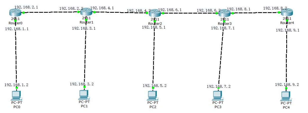 各端口的 ip 配置好后,需要配置静态路由实现全网互通。