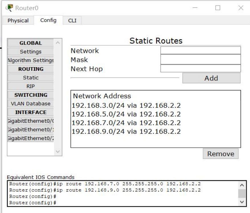 Router(config)#ip route 192.168.9.0 255.255.255.0 192.168.2.