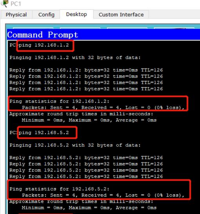 测试任意 PC ping 其他 PC,均可 ping 通并收到 reply