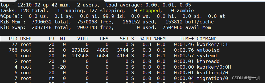 %CPU(s):按下数字1会显示所有CPU的信息,有几个CPU显示几个