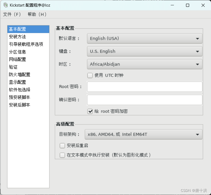 Moba使用 system-config-kickstart 命令可以直接打开,其他方式自己百度