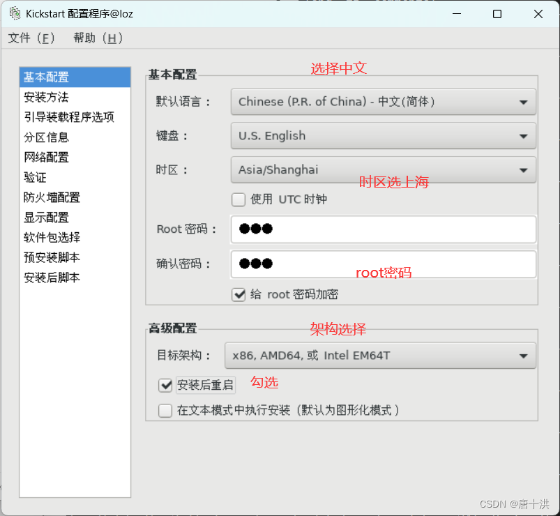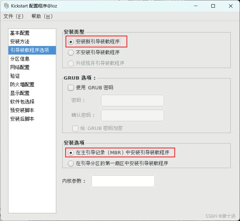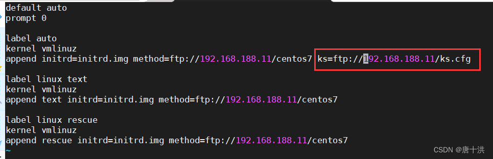 %packages @^minimal %end - 编辑引导菜单文件 default,添加 ks 引导参数