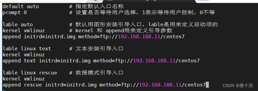 默认的启动菜单文件在TFTP根目录的 pxelinux.cfg子目录下,文件名为default