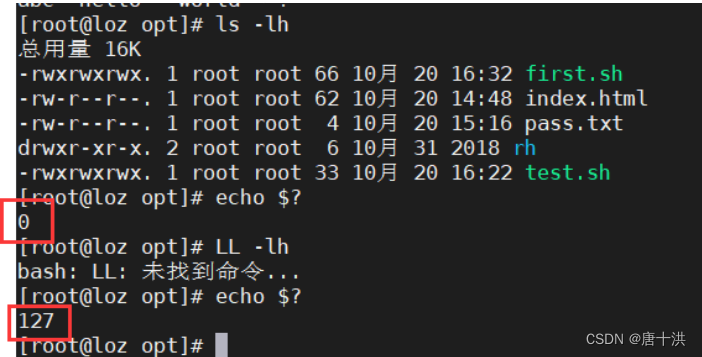 - $?:表示前一条命令的返回状态码,只有0是表示执行成功或者执行正确,非0一律表示执行出现异常