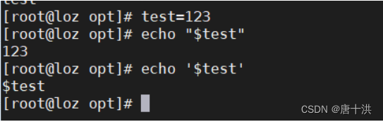 - 打印变量时,加上双引号或者不加引号是弱引用,结果会被变量的值替代