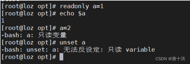 只读变量无法修改,无法直接撤销(unset),重启环境(bash)才能撤销