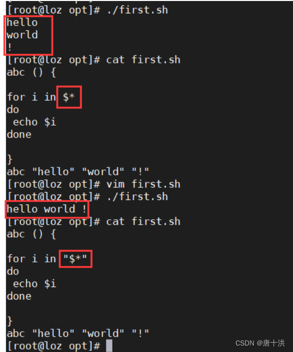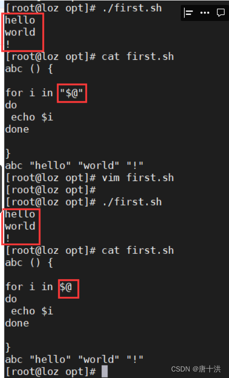 - $*和$@:表示命令或者脚本需要处理的参数