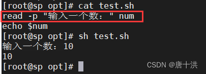 - read -p "提示字符" 变量名