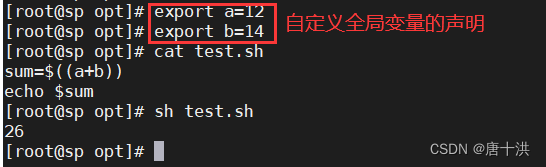 - 自定义全局变量:临时声明全局,也是只在当前shell生效
