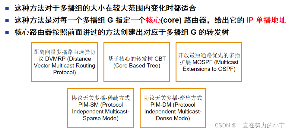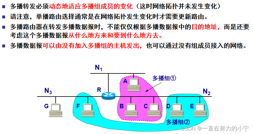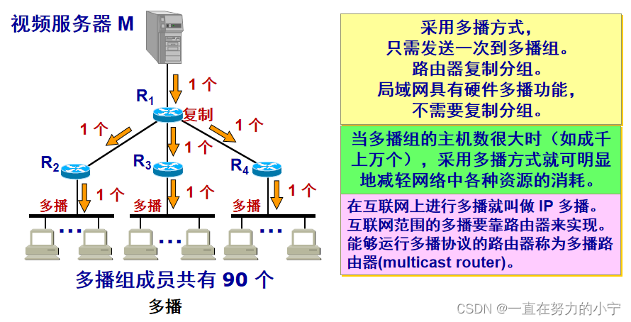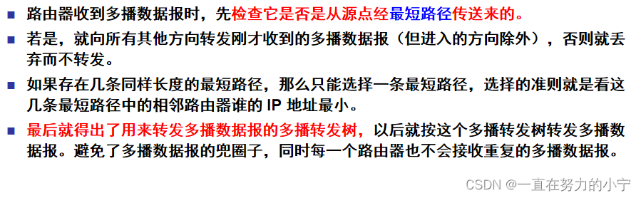 (2)怎么发:连接在局域网上的多播路由器还必须和互联网上的其他多播路由器协同工作,以便把多播数据报用最小代价传送给所有的组成员。这就需要使用多播路由选择协议。