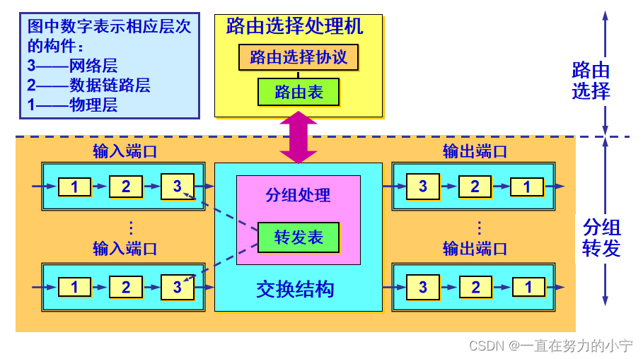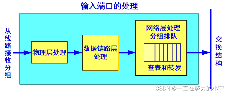 路由器的输入端口里面装有物理层、数据链路层和网络层的处理模块。