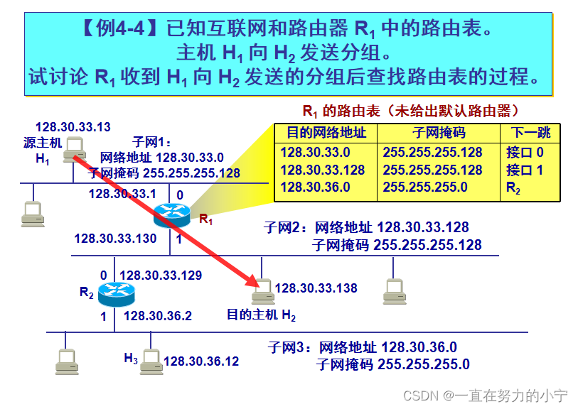 凡是从其他网络发送给本单位某个主机的 IP 数据报,仍然是根据 IP 数据报的目的网络号 net-id,先找到连接在本单位网络上的路由器。 然后此路由器在收到 IP 数据报后,再按目的网络号 net-id 和子网号 subnet-id 找到目的子网。 最后就将 IP 数据报直接交付目的主机。