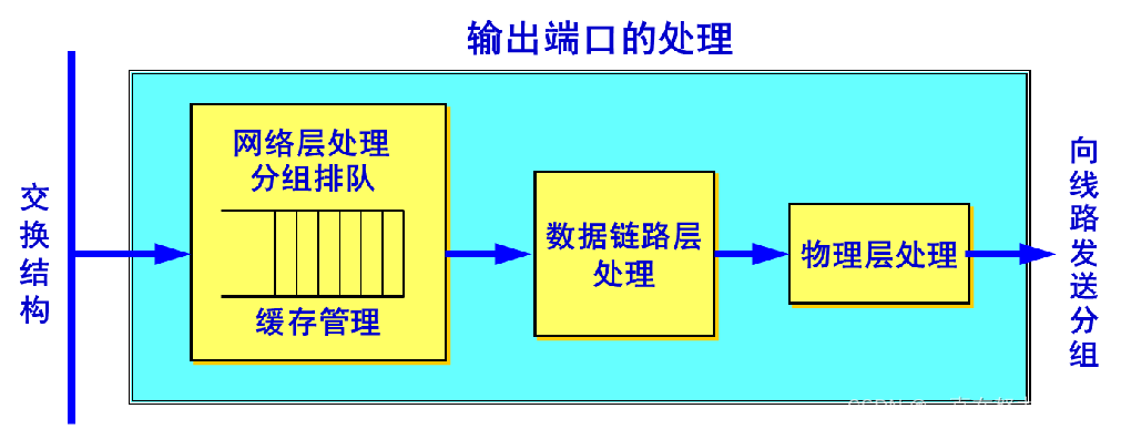输出端口里面装有物理层、数据链路层和网络层的处理模块。