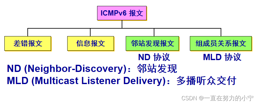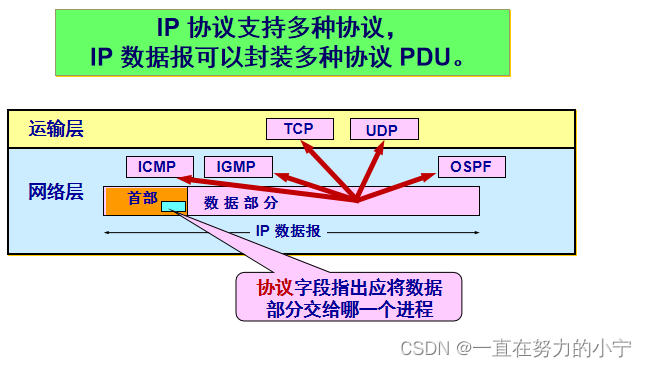 多播数据报和一般的 IP 数据报的区别就是它使用 D 类 IP 地址作为目的地址,并且首部中的协议字段值是 2,表明使用网际组管理协议 IGMP。
