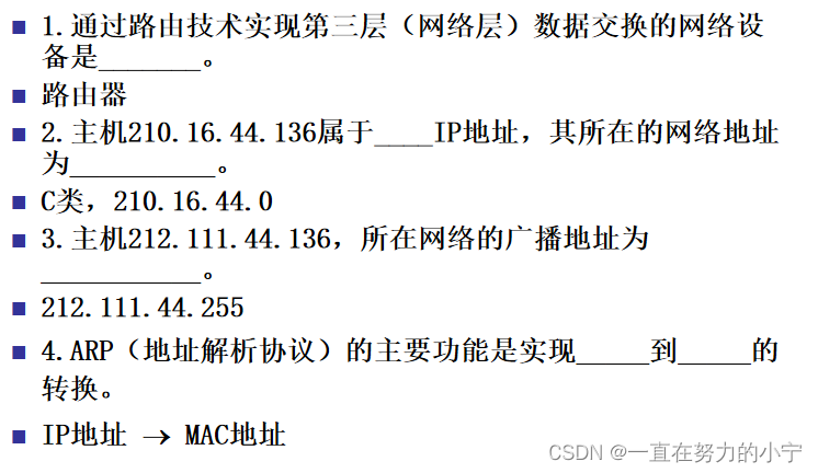 (1) 每个 IP 地址都由网络前缀和主机号两部分组成。