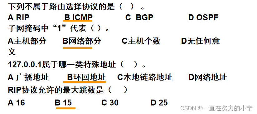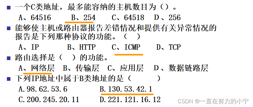 第三字节为:01001101 则广播地址为 01001111 答案:D