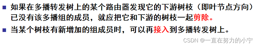 多播路由选择协议在转发多播数据报时三种方法: 洪泛与剪除、隧道技术、基于核心的发现技术