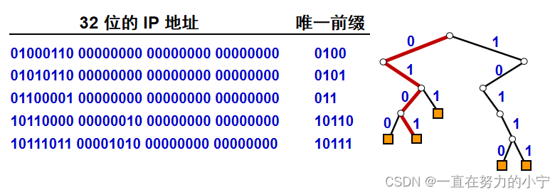 例如:128.14.35.7/20:前 20 位是网络前缀。