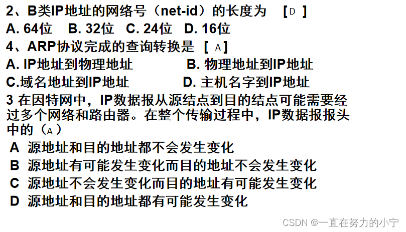 (4) 在 IP 地址中,所有分配到网络前缀的网络都是平等的。