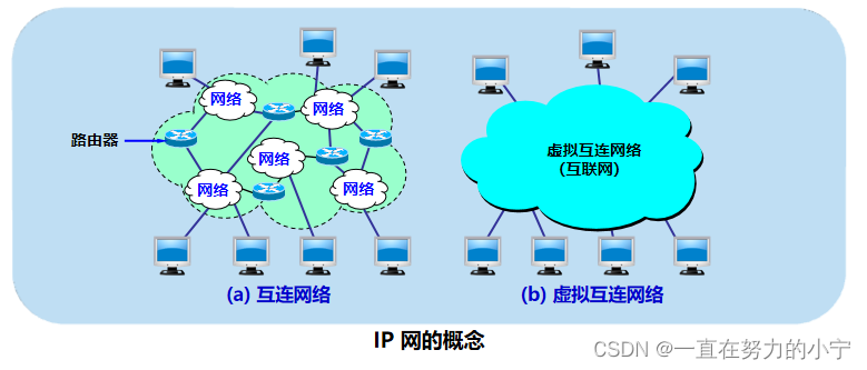 所谓虚拟互连网络也就是逻辑互连网络,就是互连起来的各种物理网络的异构性本来是客观存在的,但是我们利用 IP 协议就可以使这些性能各异的网络从用户看起来好像是一个统一的网络。