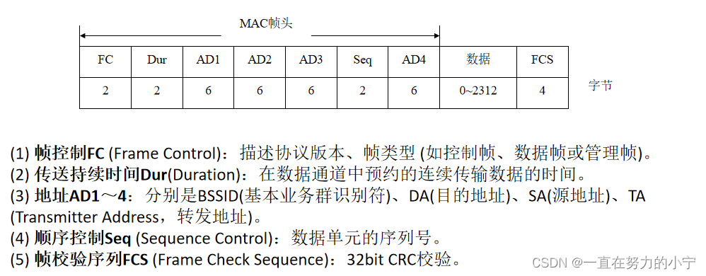(3) DIFS,即分布协调功能IFS,是最长的IFS,典型数值为50us,在DCF方式中使用。