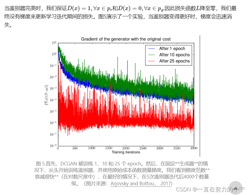- 如果鉴别器做得很好,损失函数的梯度会下降到接近零,学习变得非常慢甚至卡住。