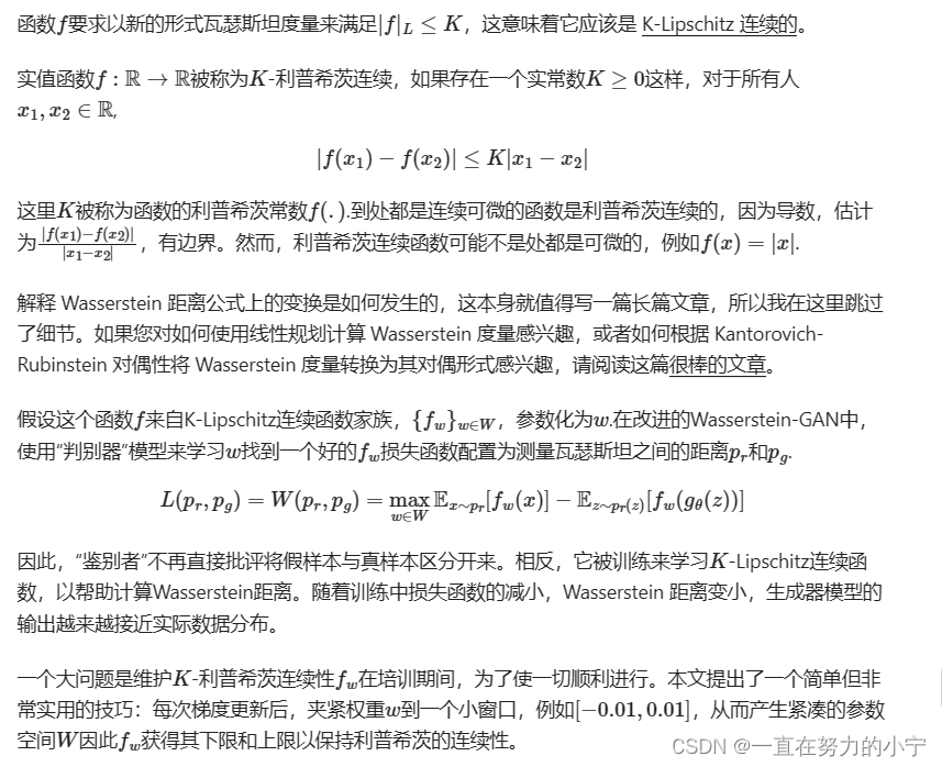 可悲的是,Wasserstein GAN并不完美。甚至原始WGAN论文的作者也提到“权重裁剪显然是强制执行Lipschitz约束的可怕方法”(哎呀!WGAN仍然存在不稳定的训练,权重裁剪后收敛缓慢(当裁剪窗口太大时)和梯度消失(当裁剪窗口太小时)。