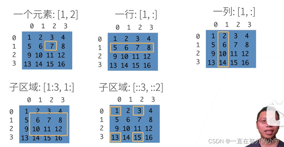 import torchx = torch.arange(12) xx.shapex.numel()X = x.reshape(3, 4) Xtorch.zeros((2, 3, 4))torch.ones((2, 3, 4))torch.randn(3, 4)torch.tensor([[2, 1, 4, 3], [1, 2, 3, 4], [4, 3, 2, 1]])
