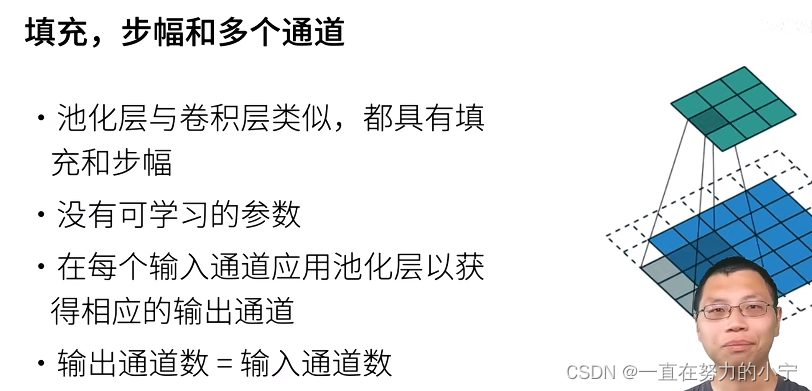 本文阐述了池化层在深度学习中的关键作用,涉及最大池化、平均池化操作,以及填充和步幅对输出形状的影响。
