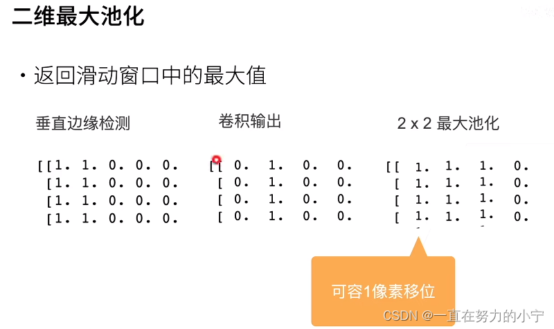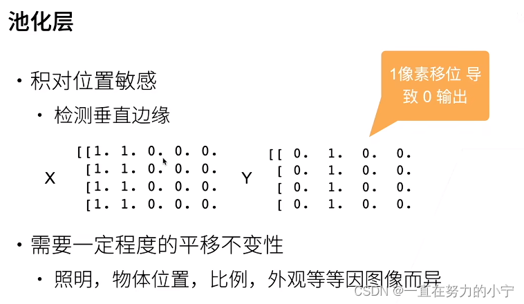 汇聚层的主要优点之一是减轻卷积层对位置的过度敏感。