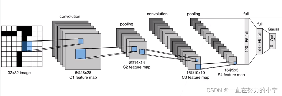 总体来看,LeNet(LeNet-5)由两个部分组成: