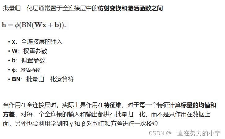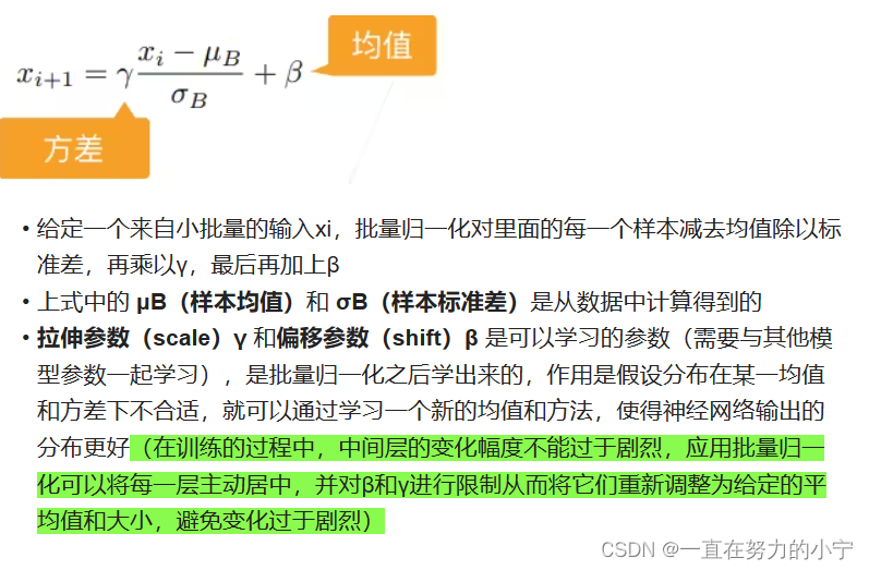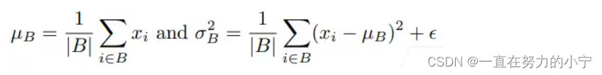 批量归一化:将不同层的不同位置的小批量(mini-batch)输出的均值和方差固定,均值和方差的计算方法如下图所示