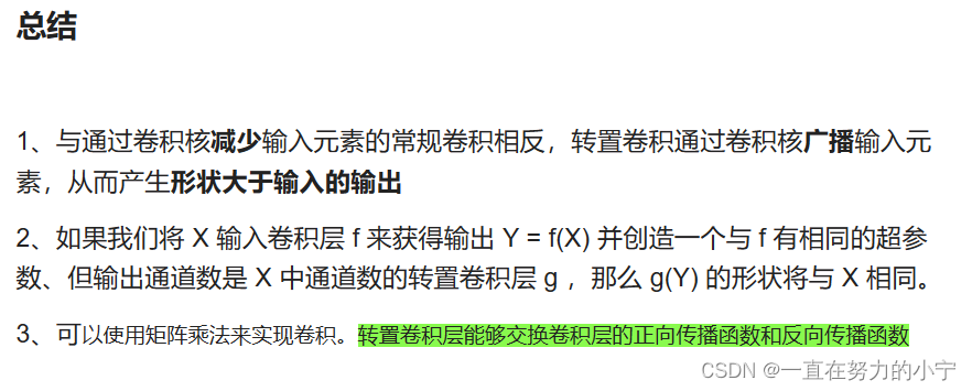 需要注意的是,转置卷积的使用需要根据具体的任务和网络架构进行调整,包括选择合适的参数和结合其他操作。