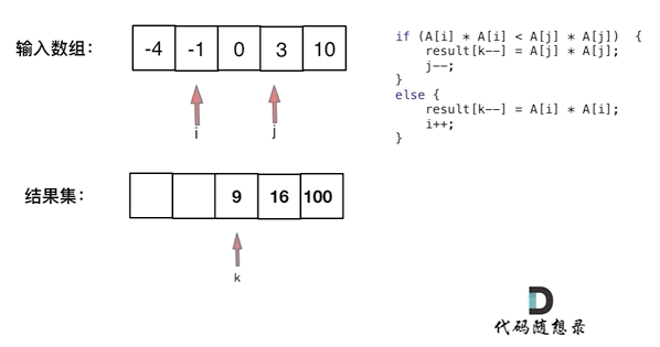 如果A[i] * A[i] >= A[j] * A[j] 那么result[k--] = A[i] * A[i]; 。