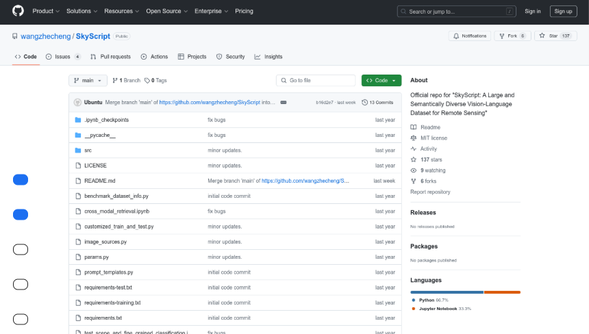 - 数据集说明:SkyEye-968k数据集包含了968k个单任务图像-文本指令和多任务会话指令样本,其中包括对公共数据的重新组织和一些经过手工验证的生成数据。该数据集填补了大规模遥感多模态指令跟随数据的空白。