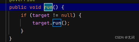 完成线程真正功能的代码放在类的run()方法中,下面是Thread类中的run方法,是重写的Runnable接口中的run方法。