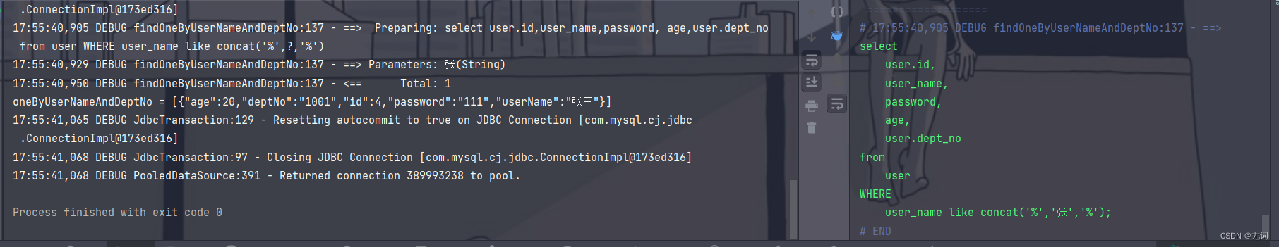 List<User> oneByUserNameAndDeptNo = mapper.findOneByUserNameAndDeptNo("张", null);