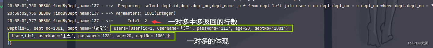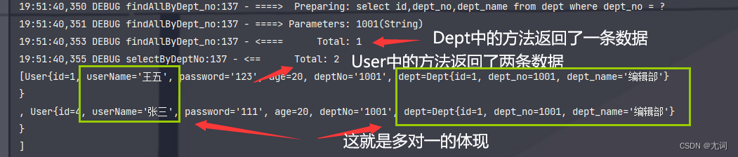 现在再去运行刚才的测试方法,就可以得到一个多对一的结果啦
