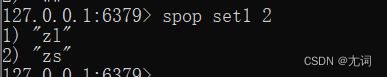 随机删除count个元素,setname不存在返回nil:spop setname count