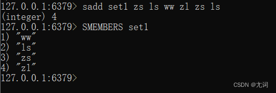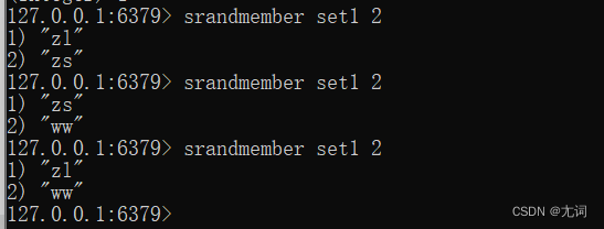 随机返回集合中count个成员,正为不相同成员,负数可以返回相同:srandmember setname count