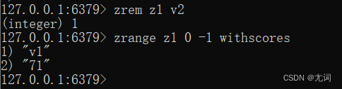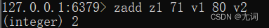 创建zset并添加 v1 v2值,并根据num1 num2排序:zadd zsetname num1 v1 num2 v2